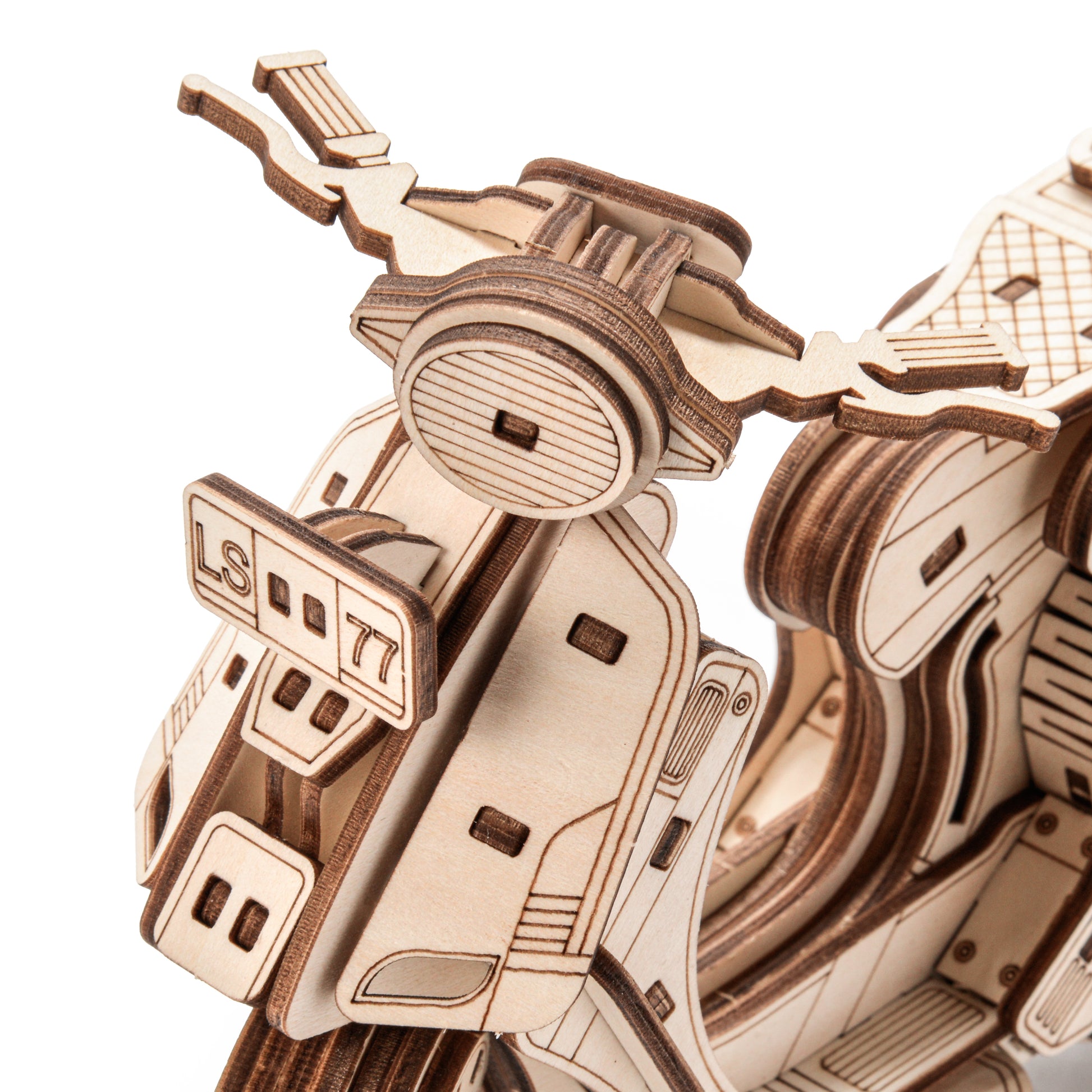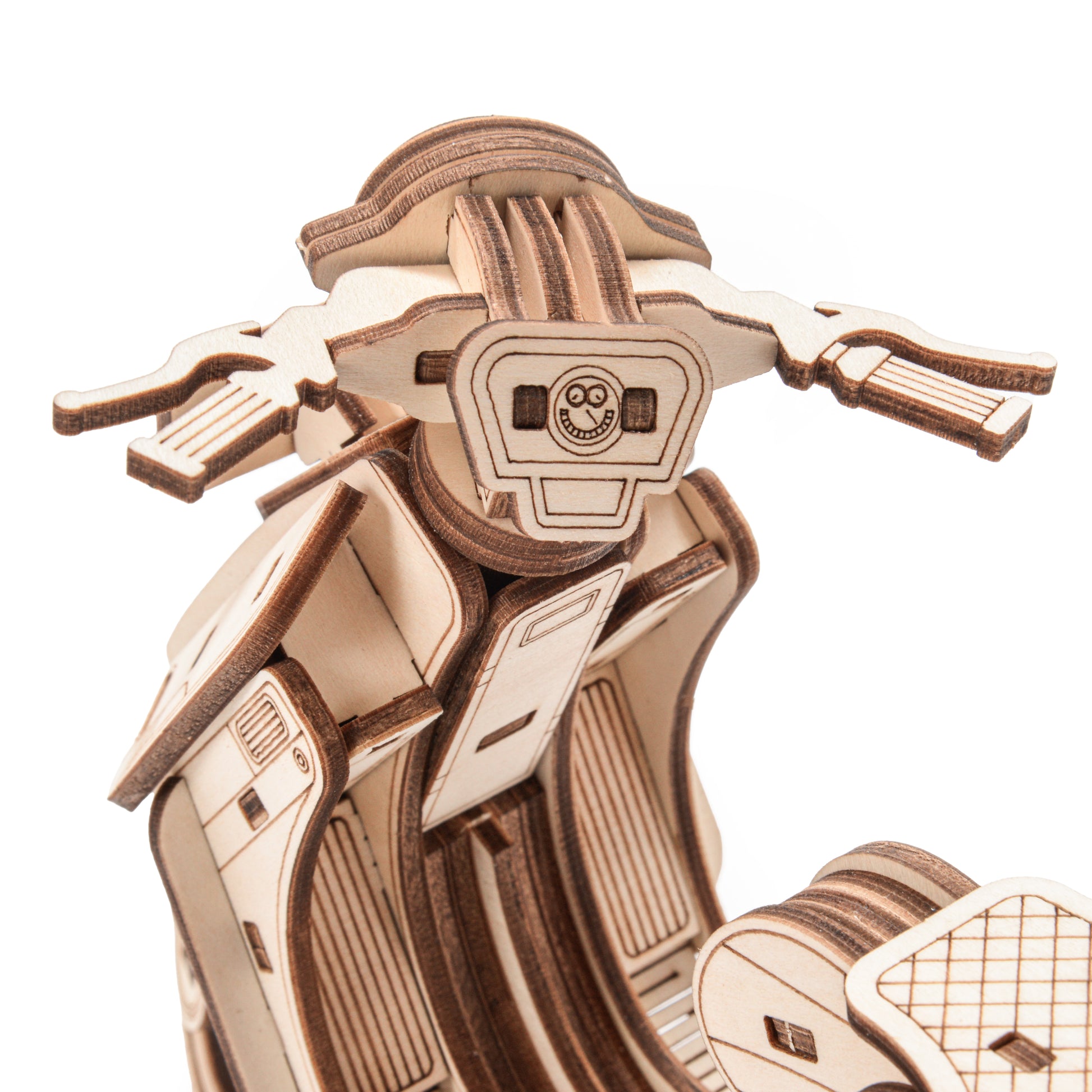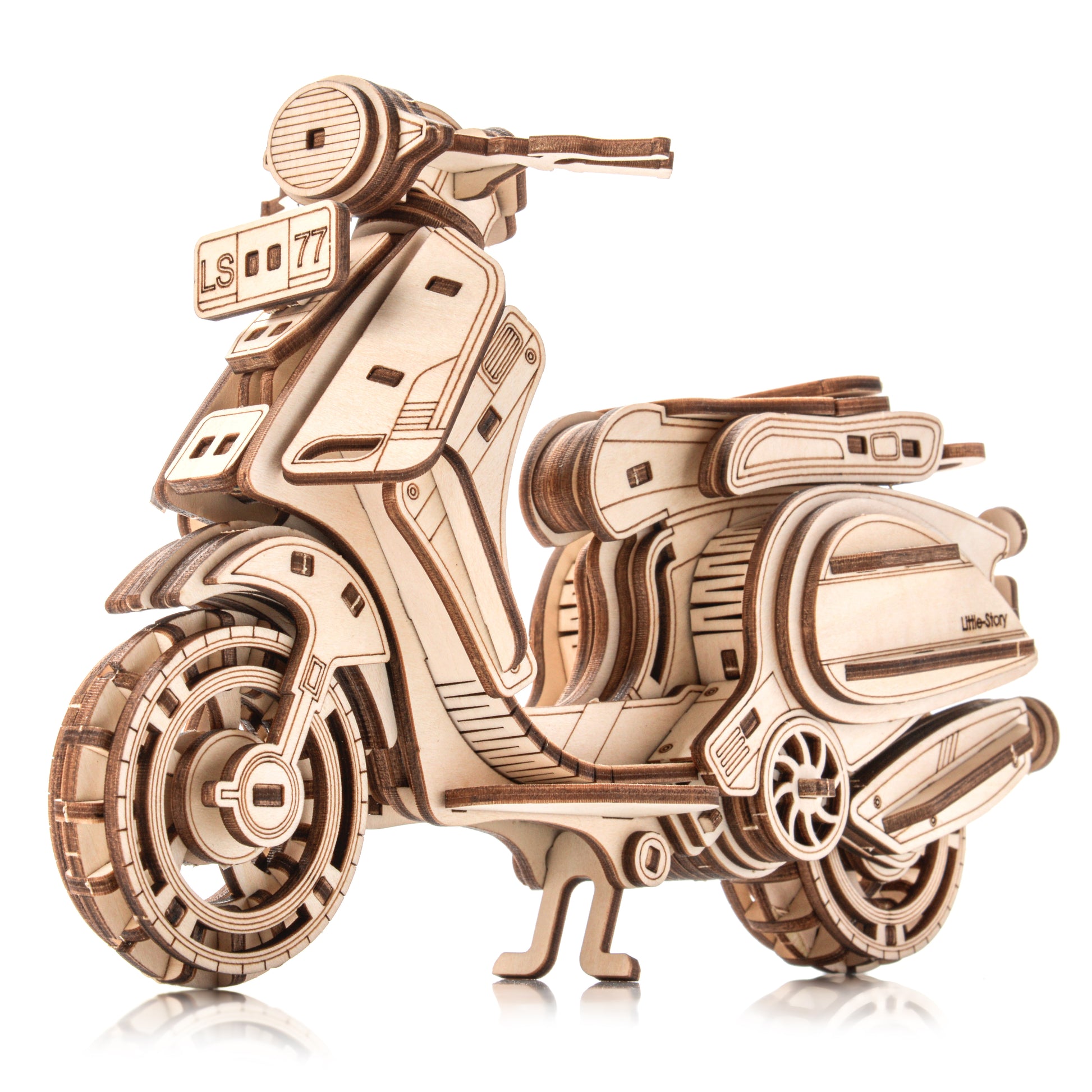 3D wooden puzzles in the shape of Sting Scooter. The set is made of high-quality plywood and comes in the form of sheets with pre-cut and numbered parts. Before assembling, separate the parts from the die-cut, and then connect them without glue, according to the detailed instructions included in the package. An educational toy that can also be used as a decoration after assembly.