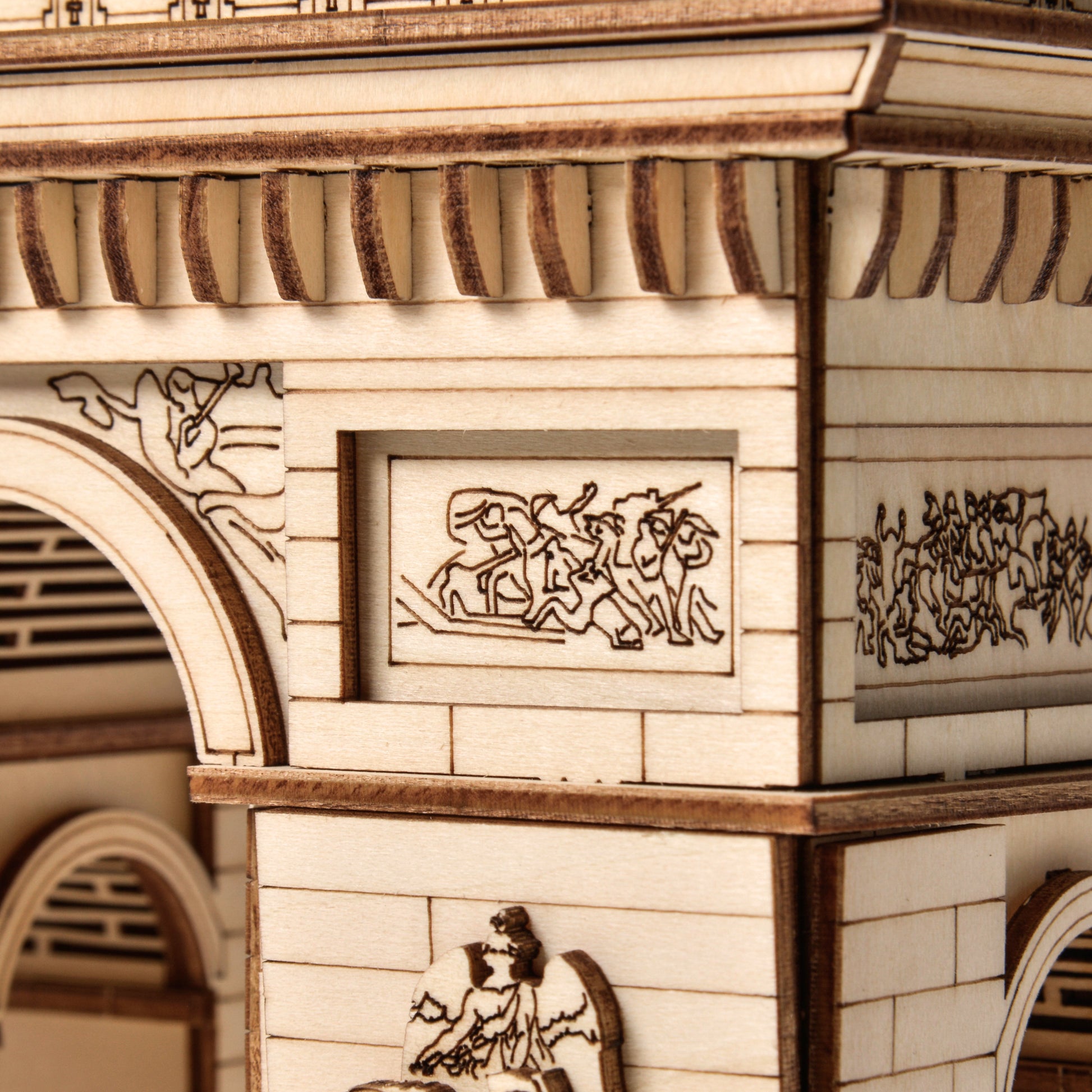 Świętuj dziedzictwo i design z drewnianymi puzzlami 3D Little Story Arc de Triomphe. Buduj. Ucz się. Triumfuj.